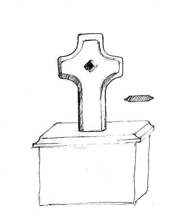 Le centre de la croix est percé d'un trou carré posé en losange ; croix et fût sont chanfreinés sur les deux faces.