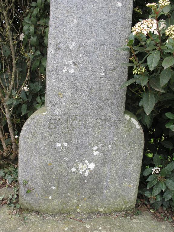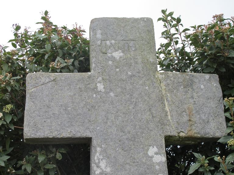 Croix construite en 1645 ; c'est la plus ancienne croix latine datée, intéressante par la régularité de sa forme et de sa taille ; on notera aussi l'absence de chanfrein sur le fût. La dalle de soubassement porte sur la tranche antérieure des traces d'usure par affutage de lame (?) ; on ignore si cette pratique, elle-même à confirmer, est liée ou non à une pratique cultuelle.