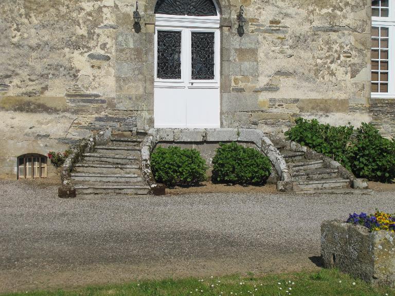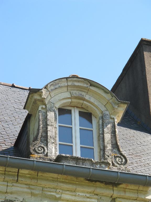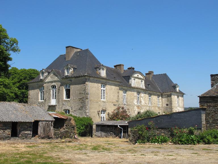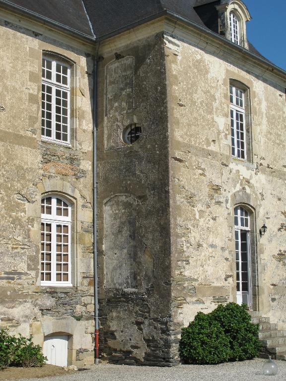 La façade principale, à l’est, se distingue par une grande sobriété : au niveau du comble, une lucarne fronton occupe la partie centrale ; ses deux fenêtres sont surmontées d’un œil-de-bœuf encadré de la date de construction : 1732. Sur les petits corps de bâtiments, une lucarne vient équilibrer l’ensemble. On accède à la porte par un escalier en fer à cheval en granite, à simple volée. La fenêtre inférieure du corps nord a été transformée en porte. La façade ouest est rythmée par sept lucarnes cintrées à clé pendante. La façade nord comporte deux travées. La façade sud se distingue des autres : la porte, précédée d’un petit escalier semi-circulaire, reprend le dessin des deux portes principales ; elle forme travée avec une porte-fenêtre dont le balcon a disparu, elle-même surmontée d’un fronton triangulaire encadré de deux lucarnes aux piédroits à volutes. Sur le mur est fixé un cadran solaire portant l’inscription : PLACÉ PAR MR B[...]LON EN 1782.
