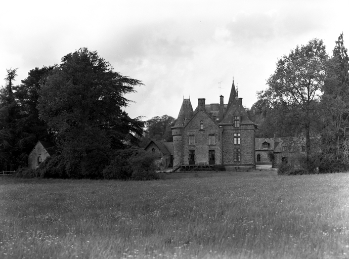 L'agrandissement du bâtiment d'origine consiste en la construction d'une aile vers le nord, d'une tour d'escalier à l'ouest, d'un pavillon au sud-est et d'un jardin d'hiver surmonté d'une galerie couverte éclairée par des vitraux à l'est. La distribution intérieure intègre l'ancien édifice. Un nouvel escalier est construit dans la tour circulaire, un escalier de service dans l'aile nord ; l'ancienne cage, fermée, est aménagée en débarras. Le décor remploie des lambris des 17e et 18e siècles. Les communs sont entièrement reconstruits à la fin du 19e siècle (puits daté 1890), en même temps qu'est dessiné le parc paysager. La chapelle ancienne subsiste au sud-ouest du château tandis que la fontaine, à l'ouest, est construite en 1803.