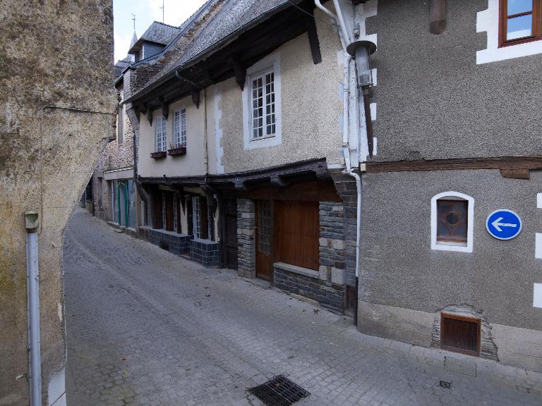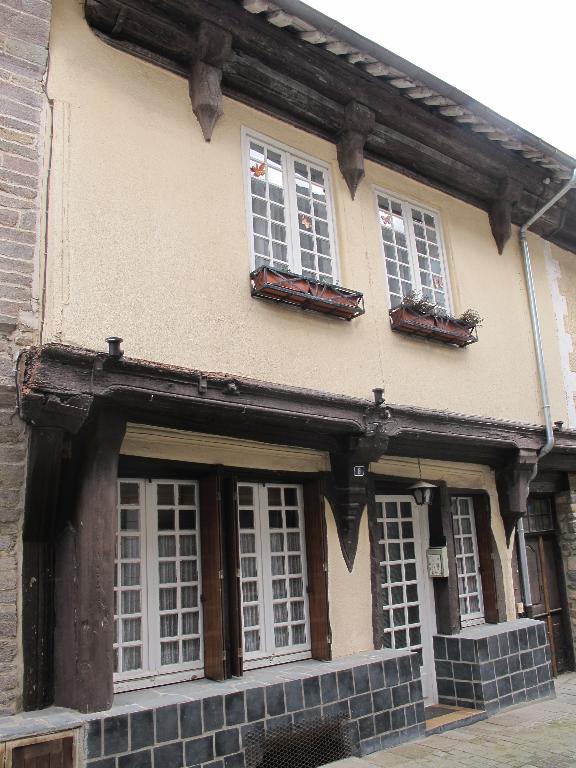 Matériaux : maison construite en pan de bois et schiste : les murs-pignons, le premier niveau de l’élévation postérieure et le soubassement de l'élévation antérieure sont en moellons de schiste (moderne au premier niveau de l'élévation antérieure).