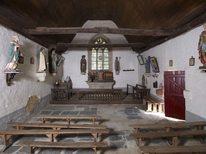 De plan rectangulaire à chevet plat, la chapelle a été construite en moellons de schiste. On y accède par deux portes en arc surbaissé sur les murs nord et sud. Le mur pignon ouest est couronné d´un petit campanile en pierre de taille très soigné, décoré de frises moulurées et couronné d´un pyramidion. À l´intérieur, la nef est éclairée par une baie en tiers point qui domine l´autel, sur le mur est. Les murs sont enduits et le sol dallé de schiste ; la charpente lambrissée comporte cinq entraits de section octogonale, aux extrémités baguées.