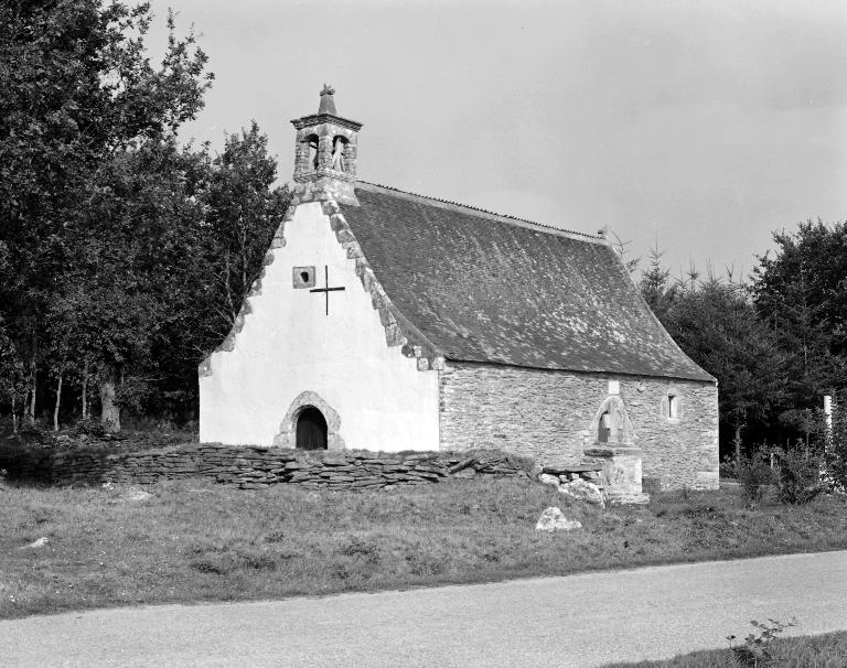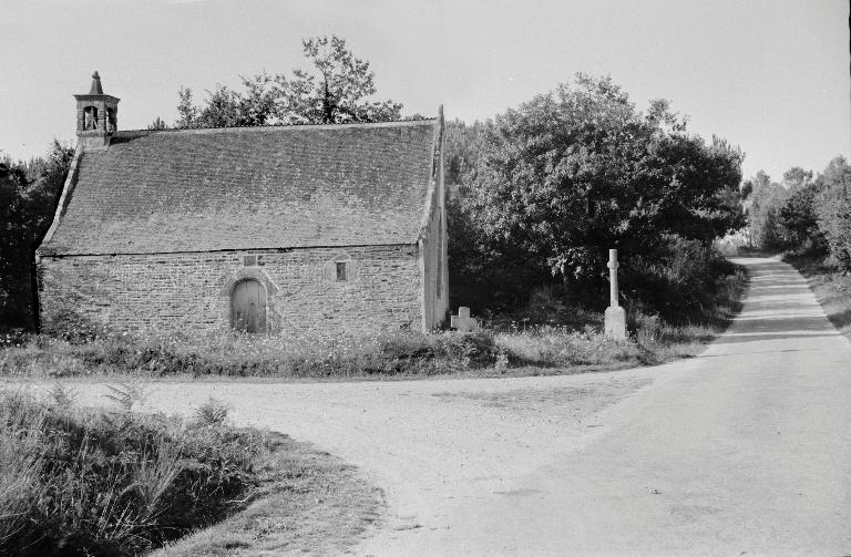 Au-dessus de la porte sud, des armoiries difficiles à lire, peuvent être celles de la famille de Sérent : d'argent à trois quintefeuilles de sable, qui aurait fait bâtir la chapelle à la limite des 16e-17e siècles.