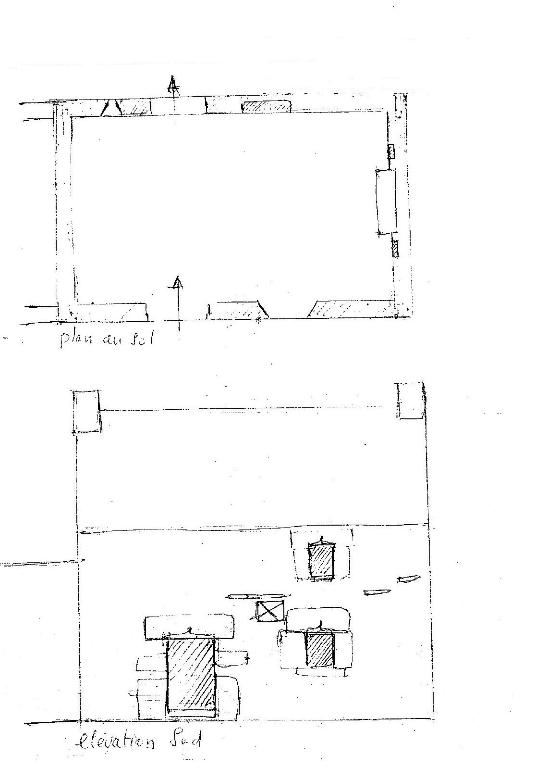 Le rez-de-chaussée servait d'étable ; cheminée sur le mur est, flanquée de deux niches ; autre niche à étagères dans le mur nord.