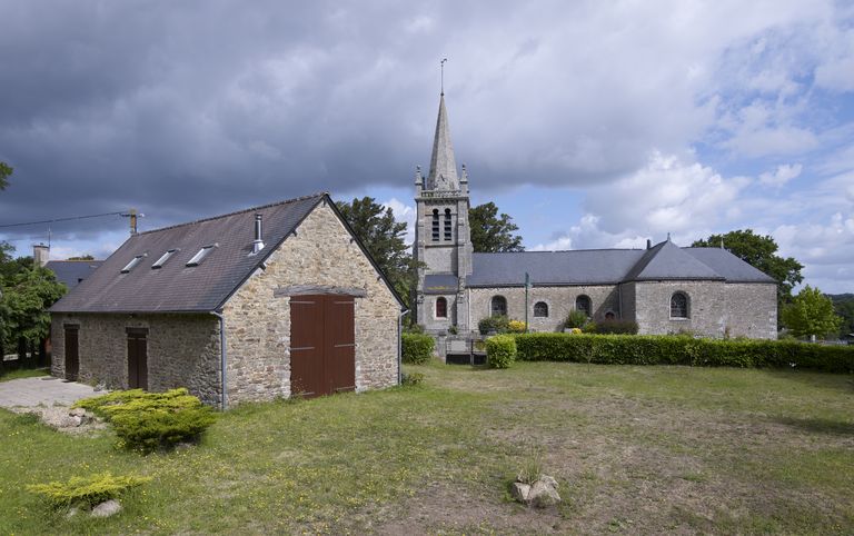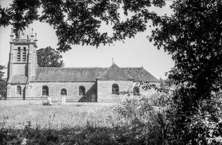 L'église primitive, signalée en 1060 dans un acte de donation à l'abbaye de Marmoutier, a disparu. Elle a été reconstruite au 18e siècle ; à partir de 1840, travaux importants : démolition du chœur et des murs des chapelles latérales ; en 1846, le clocher et la nef sont endommagés par un orage ; l'église a reçu, entre 1905 et 1912, un nouveau clocher-porche. La croix de l'enclos date du 15e ou du 16e siècle.