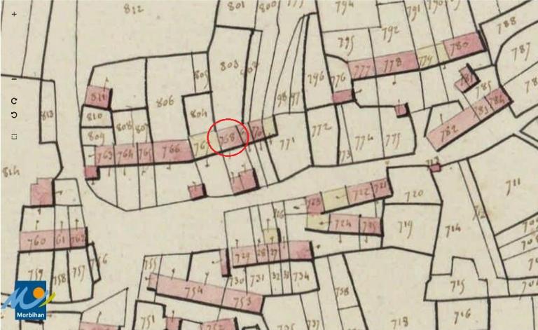 Lizio. Cadastre napoléonien, section E du Temple. Levée par M. Le Petit, géomètre du cadastre, 1829, échelle 1:2500 e.