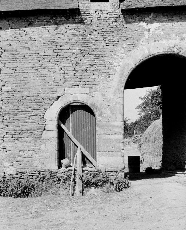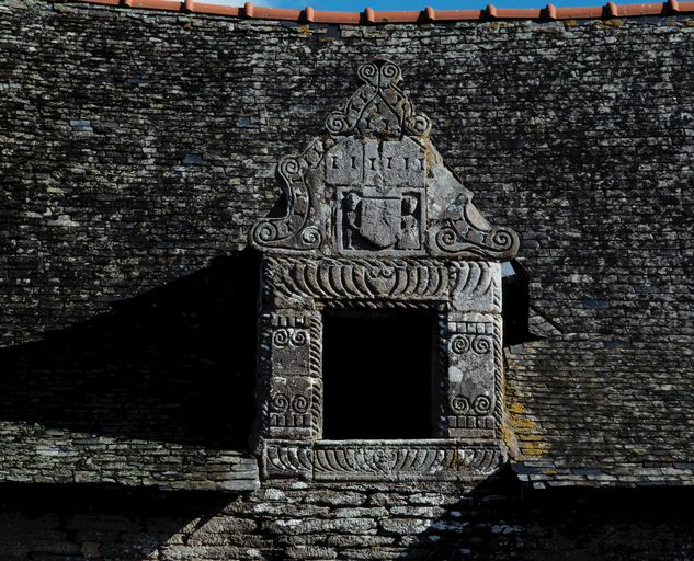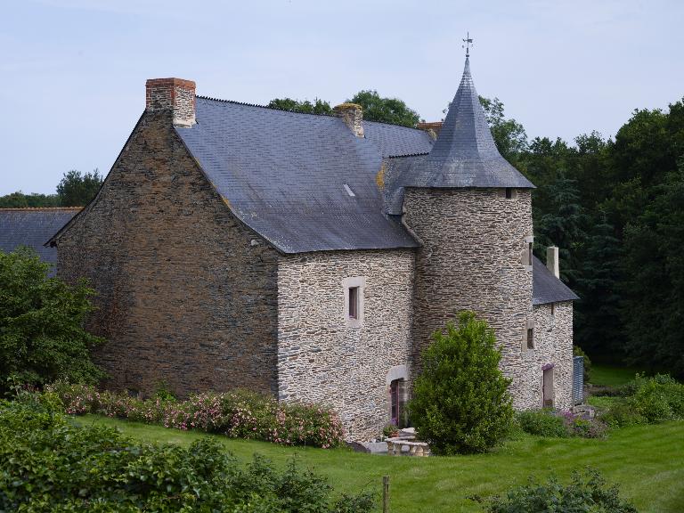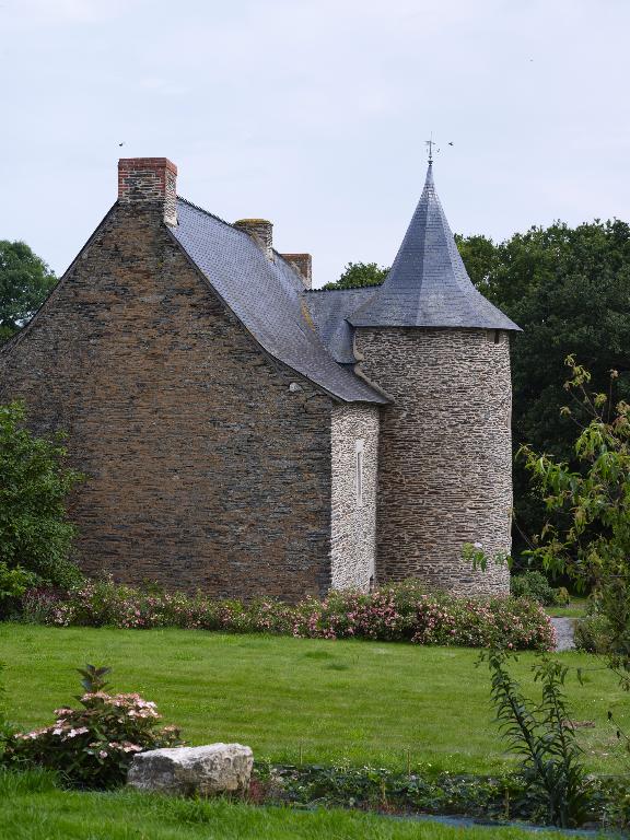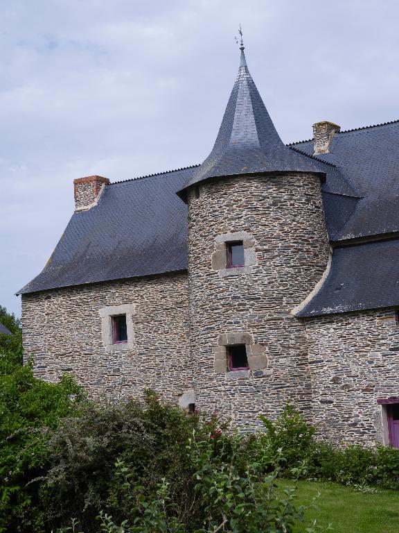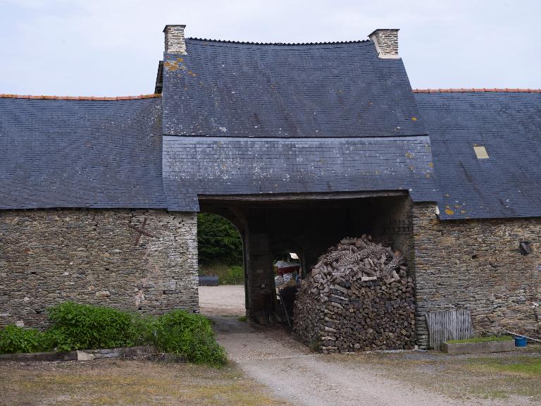 À l'est, un logis-porche fait face au logis proprement dit ; de plan allongé, son corps de passage abrite un pigeonnier ; il comportait une tour d'escalier postérieure permettant d'accéder à une pièce haute. Au-dessus des deux portes piétonne et cochère, la lucarne qui éclaire cette pièce est ornée de deux personnages et de motifs Renaissance.