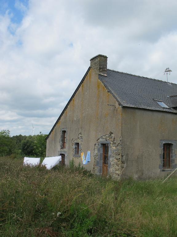 La ferme développe ses différentes parties en alignement. Un grand logis de plan rectangulaire à deux pièces symétriques est situé à l’ouest ; à l’arrière, un appentis ouvert - sur son petit côté - d’une porte surmontée d’une fenêtre ; une porte et deux fenêtres ont été ouvertes a posteriori dans les murs-pignons du logis ; les murs sont en moellons enduits, l'entourage des baies et les chaînes d’angle alternées, en pierre de taille de schiste ; le rez-de-chaussée est surmonté d’un comble à haut surcroît à deux lucarnes passantes, disposées dans l’intervalle des baies inférieures.