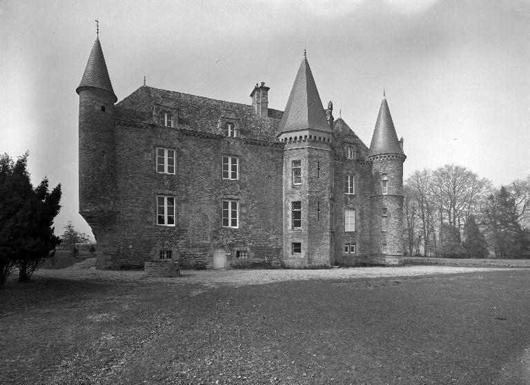 Au début du 19e siècle, le manoir datant de la 2e moitié du 16e siècle et composé d'un logis principal et de bâtiments agricoles tombe en ruine ; vers 1821 les parties endommagées sont détruites pour construire un bâtiment à l'arrière. À partir des années 1860, Charles de la Monneraye fait rebâtir le château : le manoir reste en place et est plus que doublé. L'intérieur est totalement restauré. Chapelle ancienne aujourd'hui désaffectée.