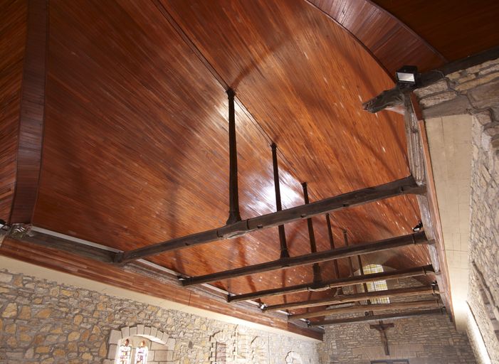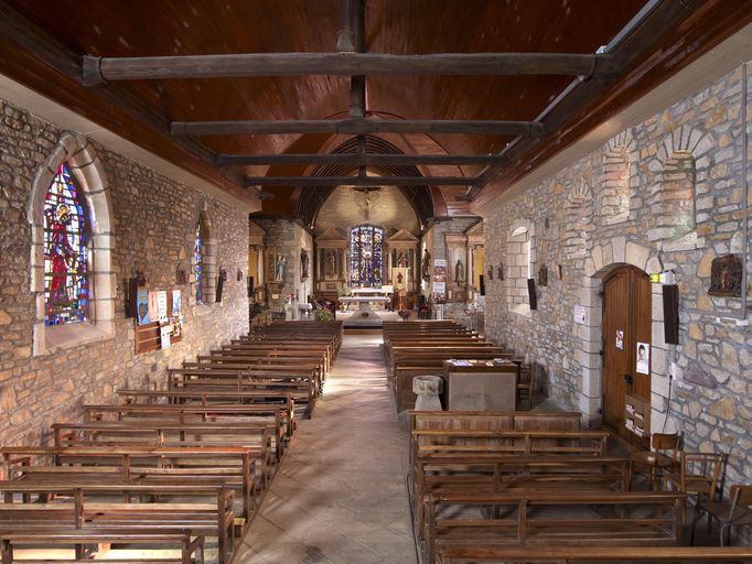 Le clocher est édifié à l'ouest en 1842. L'église a été restaurée en 1967-1968 ; à l'occasion de ces travaux, des pierres sculptées provenant de différents endroits de la commune : linteaux de porte de maisons de prêtre, armoiries, croix de chemin... ont été insérées dans le mur sud de la nef.