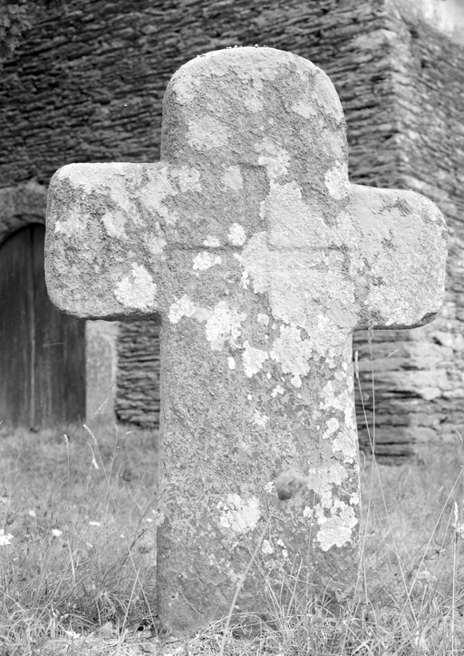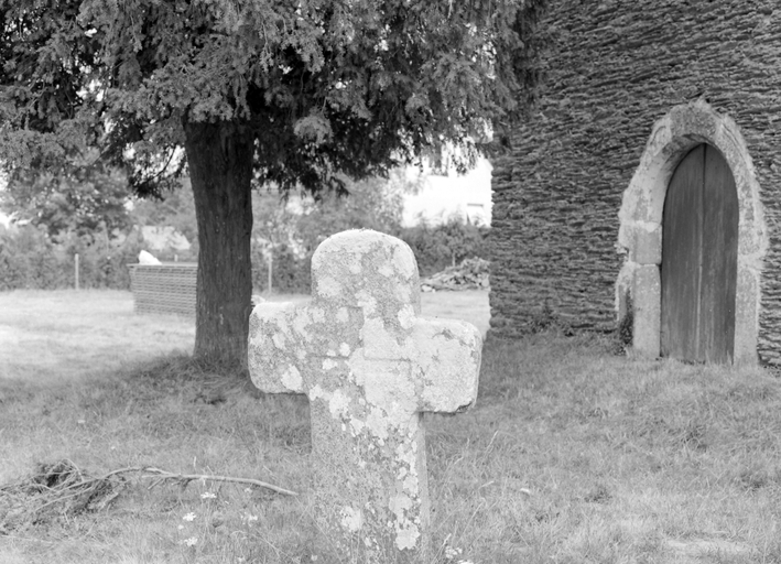 Dans l'enclos, croix en palis de granite ; dimensions : h = 130 cm ; la = 90 cm ; dimensions du fût : la = 42 cm, pr = 6 cm.