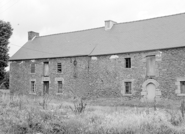 Maison de plan allongé en rez-de-chaussée et haut surcroît ouvert d'une porte haute flanquée de jours, selon une disposition très caractéristique de cette partie du canton (voir aussi les communes de Loyat et Ploërmel). Porte d'entrée et porte haute en travée, légèrement décalée, fenêtre à gauche, fenêtre plus petite à droite, une porte au nord ouvrant dan la partie gauche (salle).