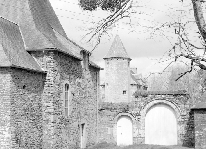 Portail 16e siècle ; manoir reconstruit avec remplois (?), dans la 1ère moitié du 19e siècle.