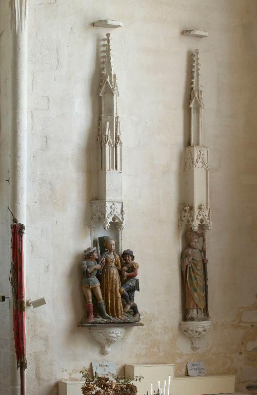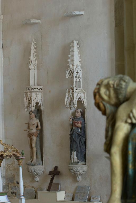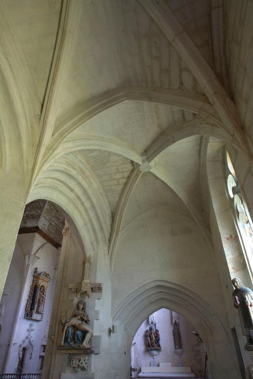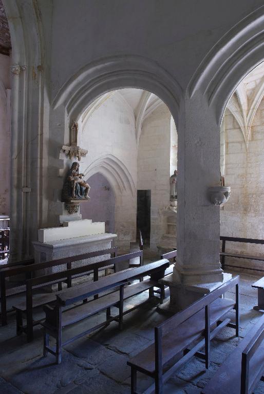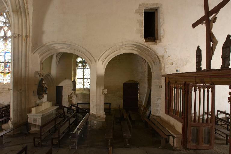 La sacristie, petite pièce rectangulaire logée à l´aisselle du bras nord et du chœur, appartient peut-être à cette seconde campagne, comme le suggère la similitude de la porte qui y donne accès, percée dans le mur nord du chœur, avec celle de la chapelle sud de la nef. Elle est en tout cas postérieure au chevet et au transept, puisqu´elle vient se coller sur les contreforts angulaires nord-est de l´un et de l´autre.