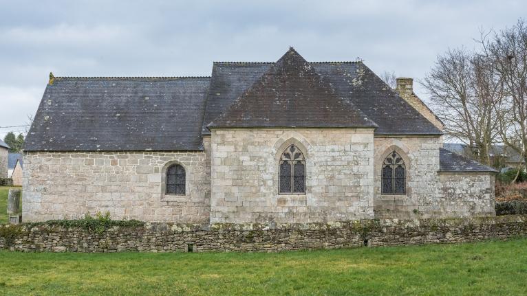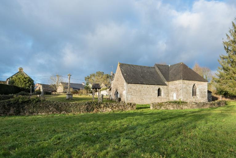 L’existence d'une chapelle à cet endroit remonte au moins au XVème siècle comme en attestent les baies remployées dans les croisillons du transept et le choeur ainsi que les vestiges d’armoiries dans les verrières mentionnées par Rosenzweig en 1863. La nef daterait du XVIIème siècle, si l’on en croit la date portée sur une pièce de l’ancienne charpente, remployée sur un entrait de celle qui fut mise en place dans les années 1980. En 1728, une fontaine fut édifiée à proximité de la chapelle qui connut une importante campagne de travaux au siècle suivant. Le registre de baptême porte en effet la mention d’une nouvelle bénédiction de l’édifice en 1864, en présence de Mgr Jean Gazailhan, évêque de Vannes, de François Falquerho, recteur de Guern et de Louis Le Cam, désigné comme entrepreneur de la chapelle en question. Cette consécration correspond à la reconstruction du chevet et du transept, suivie en 1866 de la coulée d’un sol en béton dans le chœur, afin de protéger le maître-autel de l’humidité ambiante, due à l'implantation de la chapelle dans un vallon marécageux.