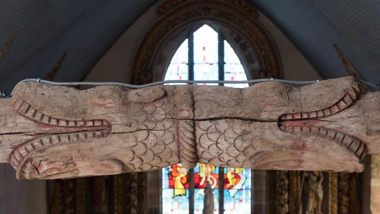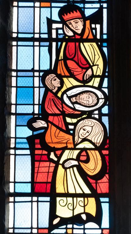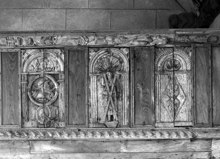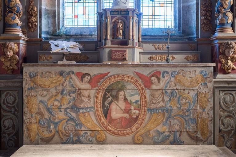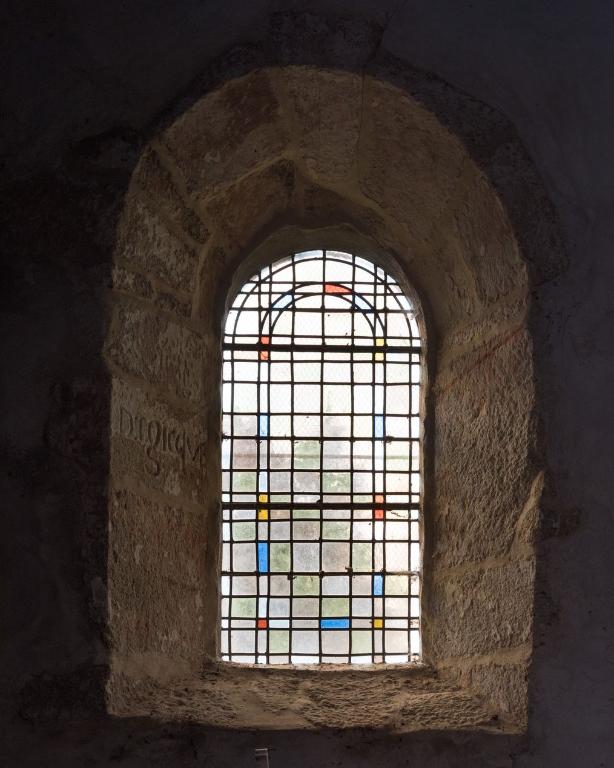 Entre 1869 et 1885, sous le rectorat de François Carel, la tribune fut restaurée et la grande baie du choeur, précédemment bouchée, fut rouverte et garnie d'une verrière figurative montrant saint Jean en pied dans la partie centrale, Salomé portant sa tête sur un plateau à gauche et saint Jean emprisonné à droite. En 1969, cette verrière fut remplacée par une nouvelle, représentant d'autres épisodes de la vie de Jean le Baptiste, sortie de l'atelier d'Hubert de Sainte-Marie, à qui l'on doit également les verrières non figuratives des baies de l'élévation sud.