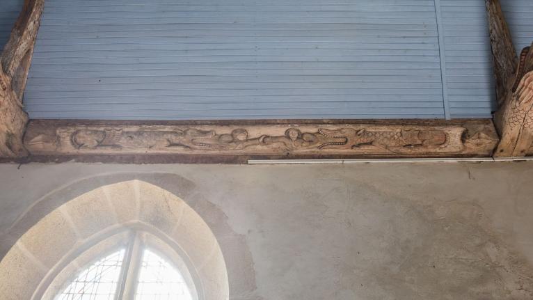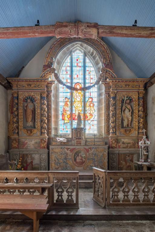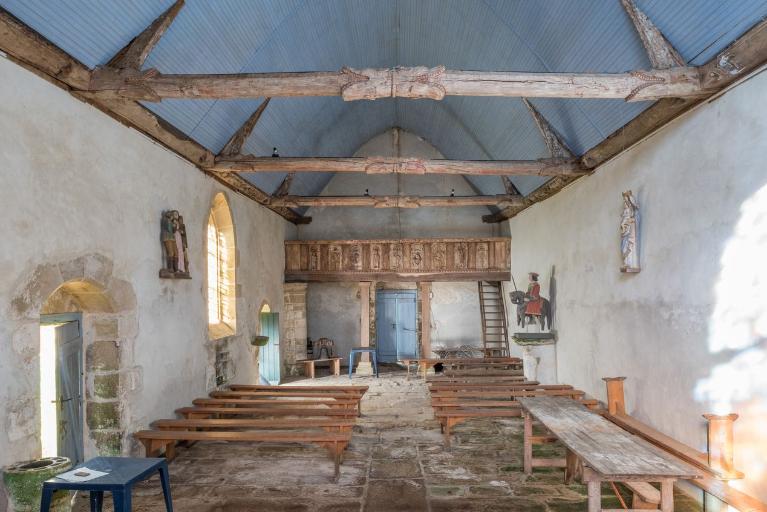 On ignore dans quel contexte fut construite ou reconstruite cette chapelle. On peut cependant supposer que des membres de la puissante famille de Baud, seigneurs de Ménorval depuis 1577 (date de la construction du manoir voisin) ont joué un rôle important. On retrouve leurs armes sur l'écu sculpté présenté par l'ange du panneau central de la tribune, associées à celles d'une autre famille, peut-être les Fraval, seigneurs de Crenihuel en la paroisse de Silfiac. Ce même blason mi-part se retrouve sur le socle en pierre conservé dans le choeur.