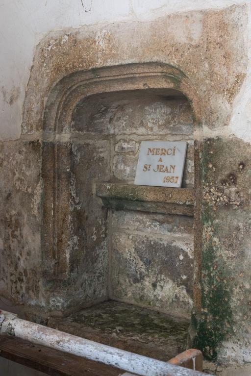 La chapelle Saint-Jean fut édifiée en 1585, sous le rectorat de Guillaume Le Franc, si l'on en croit la date apposée au-dessus de la porte occidentale de l'élévation sud. Mais les travaux et l'aménagement du bâtiment se poursuivirent tard dans le XVIIème siècle. La tribune seigneuriale fut montée en 1621, comme l'indique le cartouche placé sous l'ange du panneau central. A la même époque, on ouvrit la baie orientale de l'élévation sud donnant sur le chœur (1625). L'ancien lambris de la charpente portait la date de 1651, encore visible dans les années 1970. Enfin, une inscription peinte sur le retable le date de 1691 et est ainsi libellée : "IHS. Indulgence plénière à perpétuité", témoignant de l'ancienneté du pèlerinage pratiqué en ces lieux.