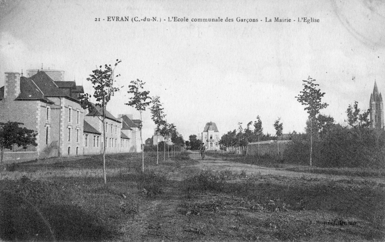 L´ouverture de la navigation sur le canal d´Ille-et-Rance en 1832 a permis un nouvel essor à la commune. Le trafic dans les années 1860 est relativement important puisque l´on enregistre le passage au port d´Evran de plus de 1000 à 1800 bateaux par an. Ils transportent des pommes, du bois et des pierres. Une quarantaine de chalands sont exclusivement voués au transport du calcaire des faluns. L´arrivée du Chemin de Fer à la fin du 19e siècle aura une incidence directe sur l´acheminement des matières premières et le trafic par voie d´eau va diminuer petit à petit à partir de cette période. Le bourg d´Evran va considérablement s´agrandir durant la deuxième moitié du 19e siècle et une nouvelle place va être créée à proximité de la nouvelle école et de la mairie justice de paix. C´est en effet autour de cette place que s´implanteront la plupart des édifices publics dont un dispensaire par Jean Fauny en 1932.