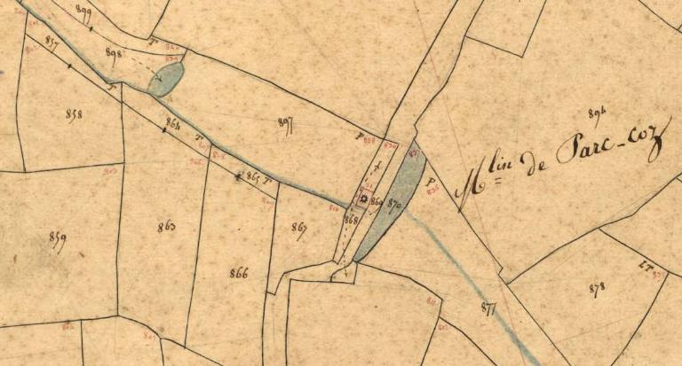 • Tréflez. Cadastre napoléonien, section A2 de l'Armorique. Levée par M. Guichoux, géomètre, 1836, échelle 1/2500 e.