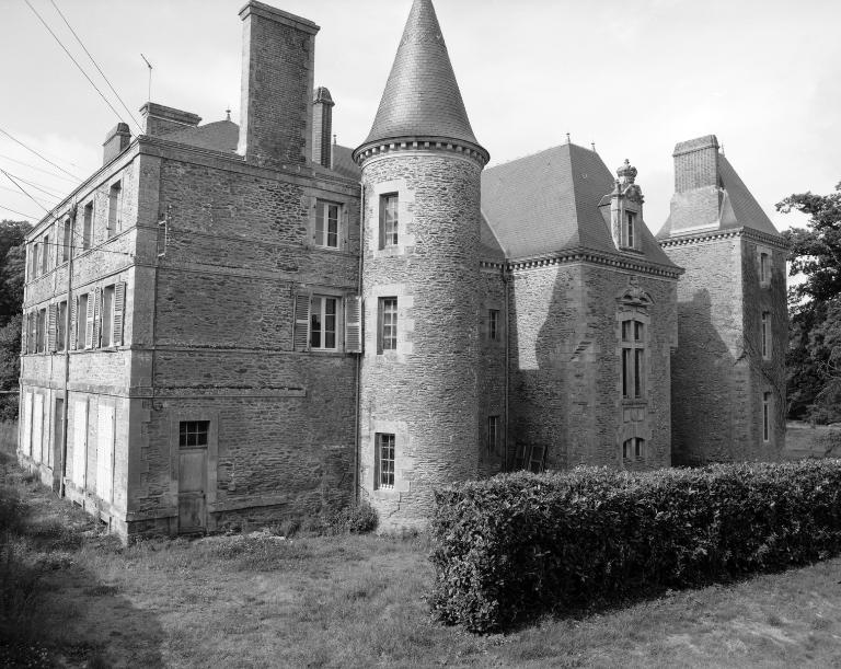 C’est à cette époque que pourrait se situer la campagne d’agrandissement du château, et la vente de deux seigneuries en 1826 est l’occasion de dégager les liquidités nécessaires. Serait concernée l’aile est du logis, qui se distingue par des baies simplement rectangulaires avec encadrement saillant comme si un enduit devait cacher la maçonnerie, avec aussi un système de bandeaux plus nombreux au niveau des linteaux et appuis, et un toit à faible pente. Cette construction remplacerait l’aile en retour vers le sud, visible sur le cadastre de 1831. Plus tardivement, auraient été ajoutés les deux pavillons nord de plan carré et le pavillon greffé sur la façade sud, qui présentent entre eux des similitudes certaines comme le rattrapage mouluré du pan coupé sur les angles. En revanche, la tourelle ronde au nord semble plus tardive (fin XIXe siècle). Une reprise des parties hautes intervint à la fin du siècle et concerne les corniches à corbelets, qui couronnent la quasi-totalité de l’édifice, la pose des lucarnes rondes et la reprise des souches de cheminée en brique.