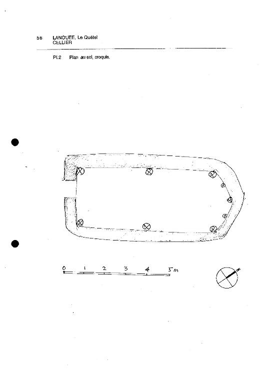Construit en 1948, le cellier du Quétel est un des mieux conservés de la commune, et, ceci expliquant cela, toujours en fonction. De plan rectangulaire terminé en forme d'abside, et ouvert d'une unique porte basse, la "loge" mesure environ 7 mètres de long sur 3 mètres de largeur dans œuvre ; la structure se compose de trois fermes portant au sol constituées de deux arbalétriers en rondin et d'un faux-entrait à assemblages chevillés ; les fermes portent un réseau de quatre pannes latérales ; la couverture, régulièrement entretenue, est faite de bruyère recouverte de paille de seigle, dont l'épaisseur dépasse 50 centimètres et procure une isolation thermique très efficace.