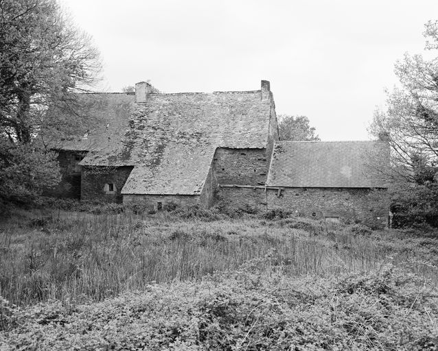 Le contraste entre le moellon de schiste et la pierre de taille de granite, caractéristique d'une bonne partie de l'architecture de cette zone, est particulièrement évident dans la façade du manoir de fondation assez tardive, datant du 16e siècle. Déclassé en ferme, puis abandonné, le manoir a été restauré dans les années 1990.