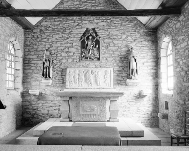 Chapelle construite au 15e siècle ; remaniée au 17e siècle et vers 1920 : allongement de la nef, couverture.