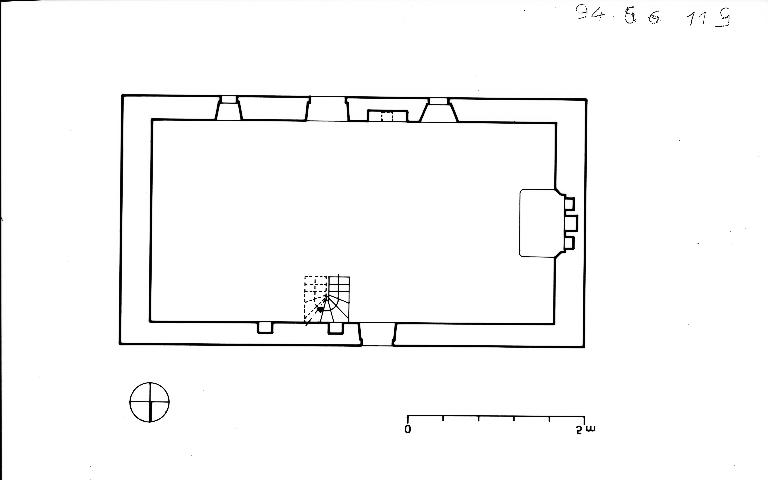 Cette maison appartient au type dit à fonctions multiples juxtaposées, à porte unique en façade. La salle occupe la partie droite et est pourvue d'une cheminée à niches et d'une pierre d'évier à écoulement extérieur ; la partie gauche est réservée à l'étable, non séparée de la salle ; le jour qui l'éclaire conserve un volet intérieur en bois avec une partie coulissante. On accède au comble par un escalier en bois adossé au mur postérieur face à la porte d'entrée. La souche de cheminée de gauche est fausse et n'a d'autre but que de rétablir une symétrie, absente par ailleurs de l'élévation. Datée de 1709, la maison de Mesle montre la persistance de l'arc en plein cintre jusqu'au début du 18e siècle. L'état d'abandon pose à l'évidence le problème de la conservation de cette architecture paysanne.