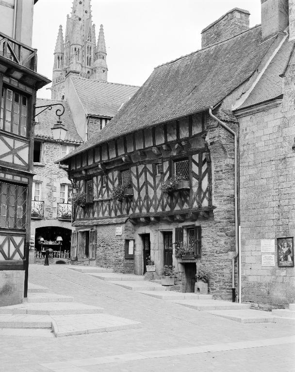 De la cinquantaine de façades en pan de bois recensées en ville, celle-ci est une des plus homogènes. Le rez-de-chaussée est bâti en moellons de schiste vert d'extraction locale. Les parois de l'étage, en encorbellement peu prononcé, conservent le pan de bois d'origine où alternent, séparés de potelets non sculptés, des décharges en croix de Saint-André et en chevron, réussissant ainsi à transformer les contraintes techniques en parti graphique et décoratif. L'édifice porte la date de 1624 et le nom de son commanditaire, 'Lovys Piechel', vraisemblablement un marchand.