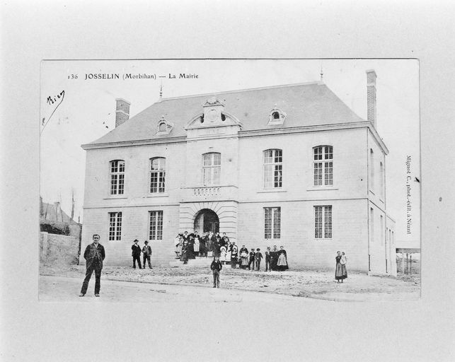 À la fin du XIXe siècle, la ville connut un certain nombre de transformations. L'architecte Lafargue s'est vu confier plusieurs chantiers publics. Sur l'emplacement d'anciens jardins, à l'est de l'église, il construisit, en 1903, un marché couvert (détruit après 1950) dont la structure métallique provenait des établissements Michelin à Paris. Lafargue signa également en 1904 le projet de cette mairie ; le cartouche du fronton porte, mi-parti au 1 Rohan-Chabot et au 2 un coq gaulois.