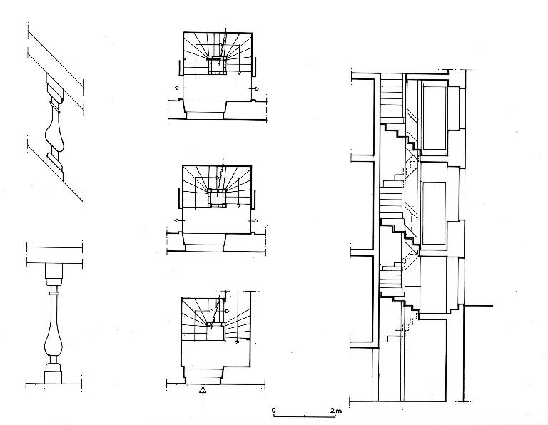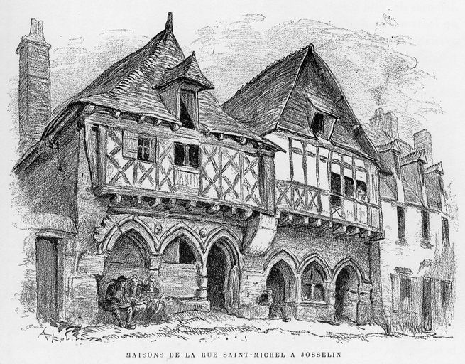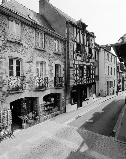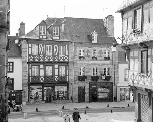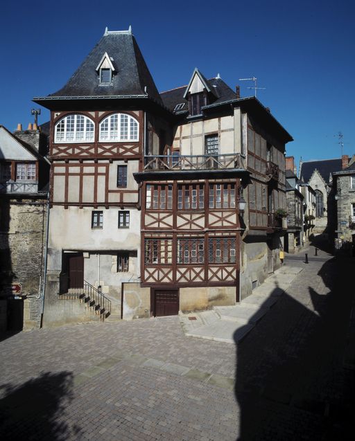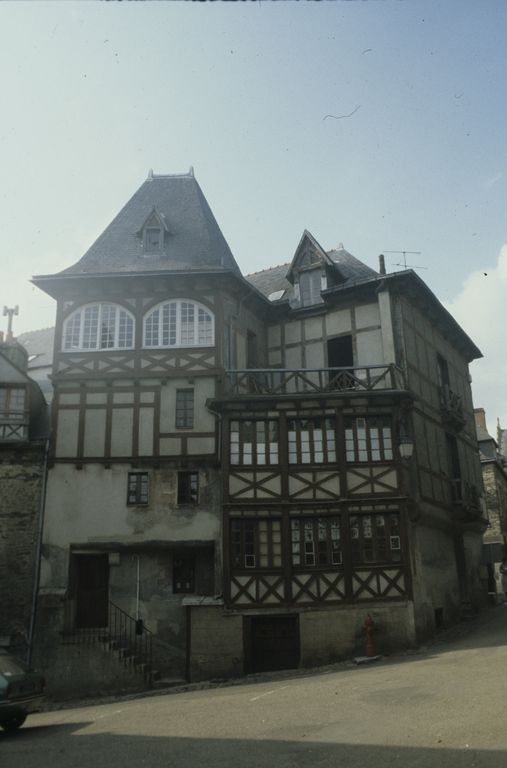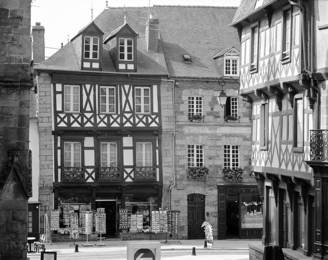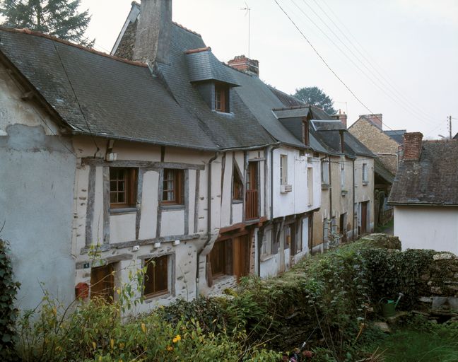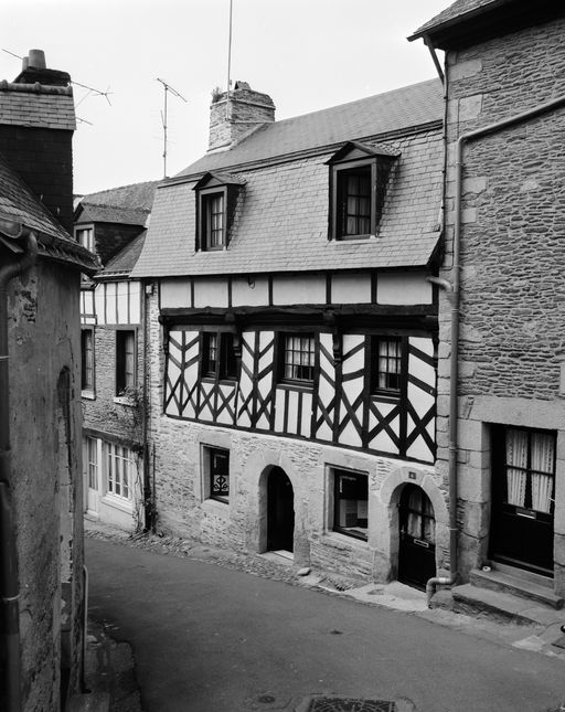 Typologiescheminée sur gouttereau ; tour d'escalier postérieure ; plan double en profondeur ; effet de polychromie ; en front de parcelle ; mitoyen(ne) ; upper-cruck ; encorbellement sur solives
