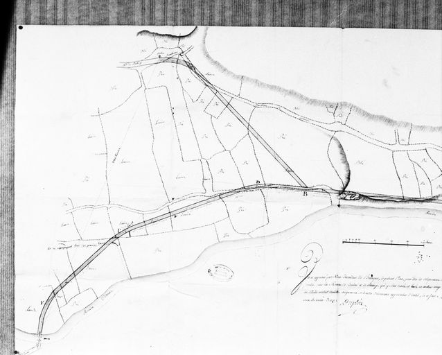 A. D. Ille-et-Vilaine. Série C 730/2. Chemin de Josselin à Pontivy. Projet d'aménagement. Dessin, par Monnier, vers 1770.