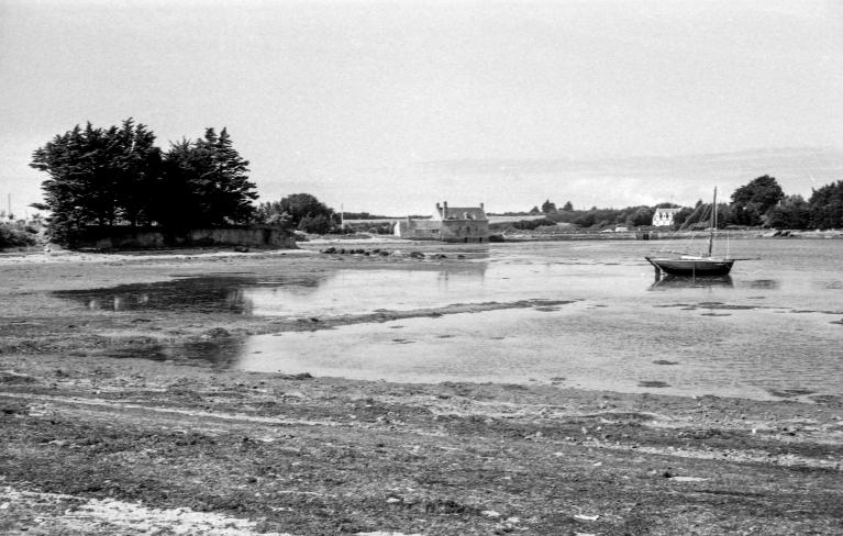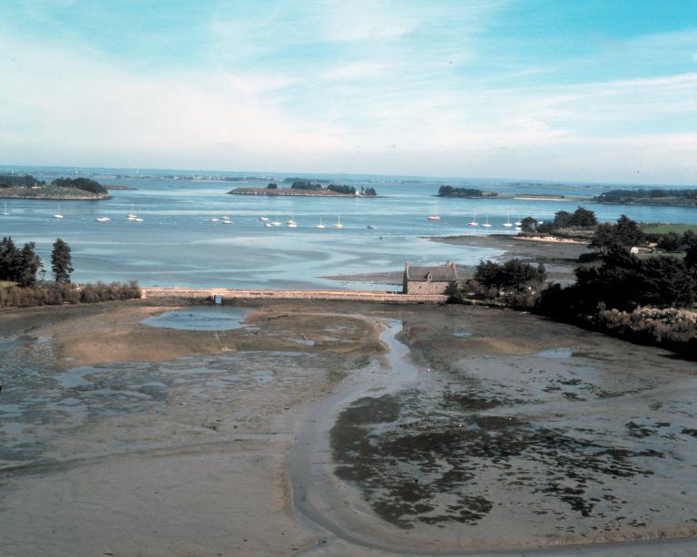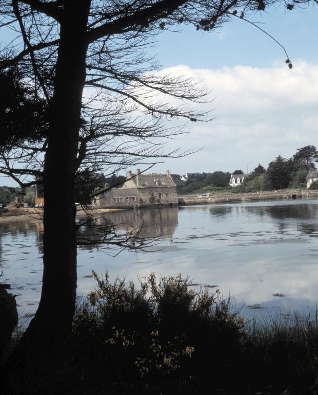 Moulin à marée reconstruit au 17e siècle par les moines de l'abbaye de Saint-Gildas à l'emplacement d'un édifice analogue existant dès 1380, qui leur avait été donné par le duc de Bretagne Jean IV. Resserre au sud-est construite à la fin du 18e siècle (date 1786 mentionnée par travaux historiques). Site classé en 1933. [Catherine Toscer], [Olivier Renaudeau].