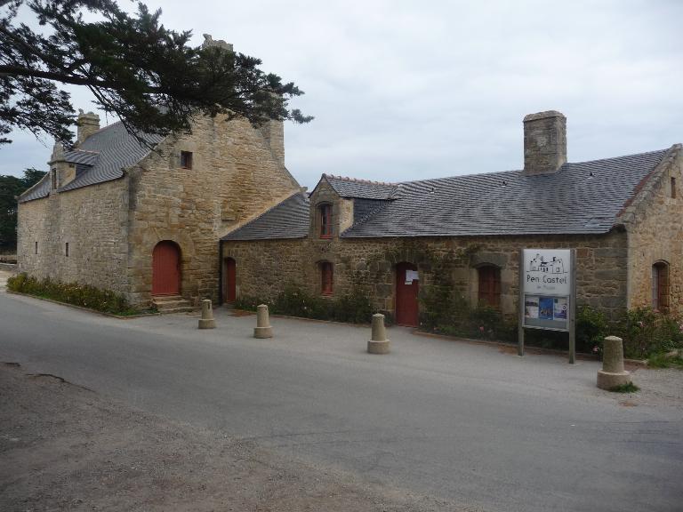 Les soubassements et les angles du bâtiment sont en pierres de tailles. Les façades en comportent également mais elles sont principalement réalisées en moellons de granit. A chacun des quatre angles, à la jonction du haut de la façade et du toit, on note la présence d'un corbeau arrondi ou crossette. La façade aval présente deux fenêtres de part et d'autre d'une porte haute donnant au dessus de la mer. Cette ouverture caractéristique des moulins à marée permettait de décharger ou charger des navires en sacs de grains ou de farine à l'aide d'une poulie toujours présente à Pen Castel. Au bas de cette même façade aval, chacun des deux coursiers est surmonté d'un linteau plat et étroit reposant sur deux corbelets. Depuis la dernière restauration réalisée en deux tranches de travaux entre 2002 et 2009, ces coursiers qui accueillaient autrefois deux roues verticales intérieures, ont été réhabilité. Il est depuis possible de les observer au travers d'un sol vitré. La façade opposée, côté chaussée, ne dispose pour sa part que de deux petites fenêtres en guise d'ouverture.