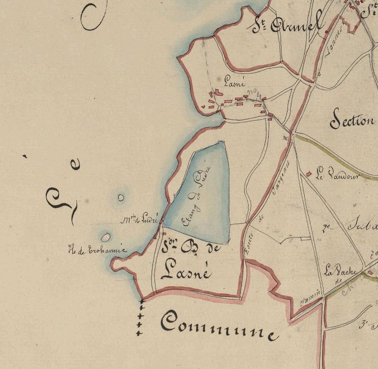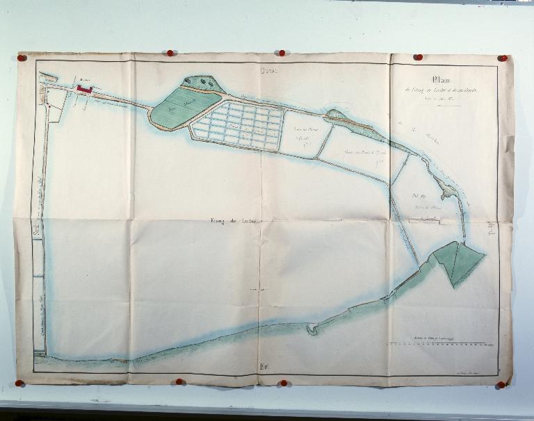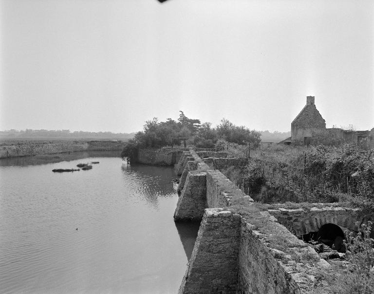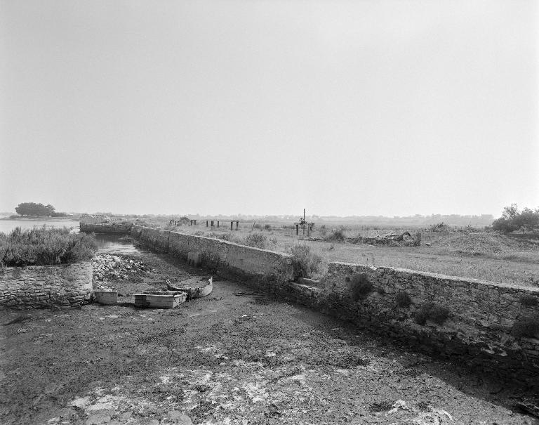 L'ancienne retenue d'eau, désormais sans relation avec la mer, comprend des zones marécageuses ainsi que des pâturages. L'observation de la carte de Cassini laisse à penser à une dimension vraisemblablement proche de 45 ha au XVIIIe siècle. Le cadastre napoléonien indique qu'elle a été réduite ensuite mais qu'elle est restée considérable avec 32 ha. On peut toujours y observer, des délimitations internes, vestiges des salines et des activités ostréicoles.La digue, d'un total de 450 mètres environ, est composée de deux parties à peu près égales de part et d'autre d'un ancien îlot.