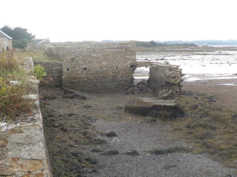 Moulin à marée attesté dès 1474, et appartenant au domaine royal de Rhuys jusqu'à la Révolution, détruit. Minoterie industrielle construite en remplacement en 1861, en ruine. Bâtiment d'exploitation daté 1861, date portée. Siège d'une exploitation ostréicole à partir de 1874. Ancienne minoterie occupée jusque vers 1930 par la Société Industrielle des Varechs qui y installe une usine de traitement et de séchage des algues, utilisées comme garniture de matelas : séchoir datant de la fin du 19e siècle. [Renaudeau Olivier]