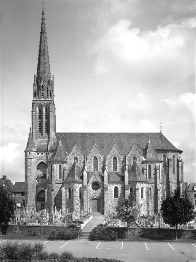Plan allongé à trois vaisseaux ; voûte d'ogives en brique ; toit à longs pans, toit en pavillon, croupe, flèche en maçonnerie ; escalier hors oeuvre, escalier en vis avec jour ; clocher-porche, façade latérale à pignons multiples, chevet à pans coupés, style néogothique.