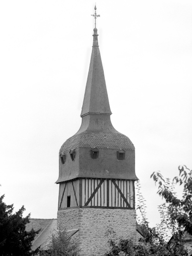 Eglise de plan en croix latine. Le clocher est l'élément le plus ancien et est accolé au chevet. Il possède pour particularité d'être en partie en pan-de-bois. Il est recouvert d'une flèche polygonale qui surmonte un toit en carène.