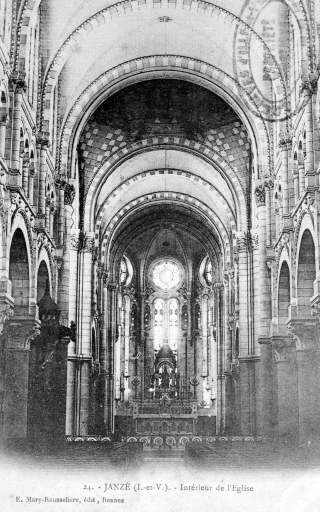 Vitraux datés 1880, signés Champigneulle. Vitraux datés 1985, signés atelier de Janzé dans l'ancienne sacristie nord transformée en oratoire.