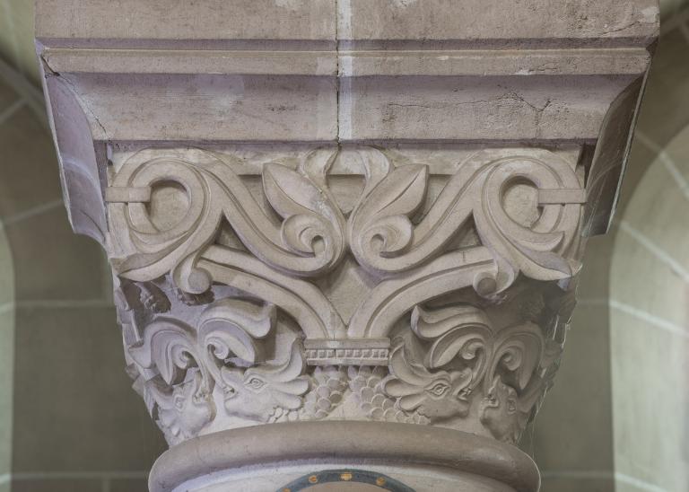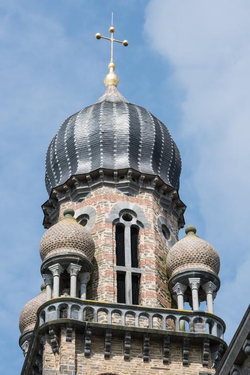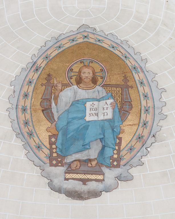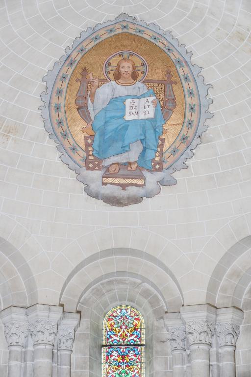 Plan centré. Nef de plan carré. Coupole à trompes. Style romano byzantin accentué de l'extérieur par la présence de bulbes qui recouvrent le clocher latéral. Décor intérieur sur fond d'or rappelant les mosaïques byzantines. Contraste saisissant entre l'extérieur et l'intérieur.