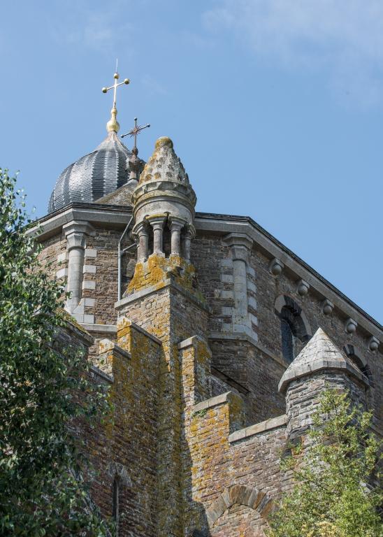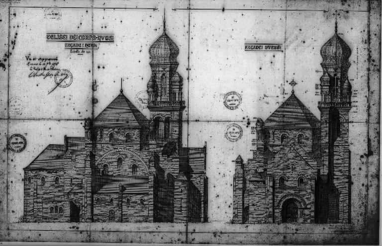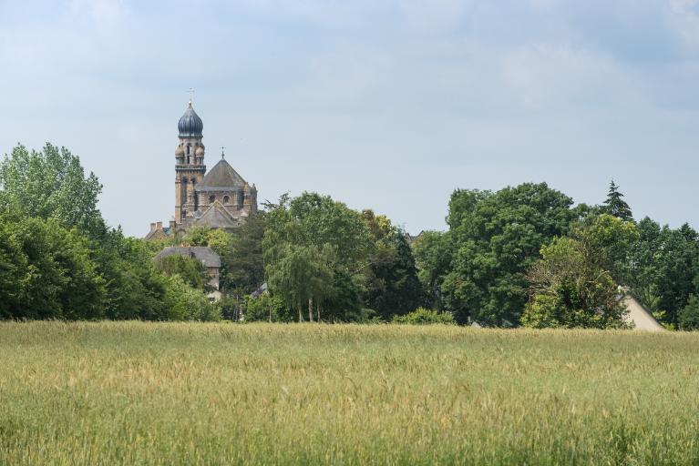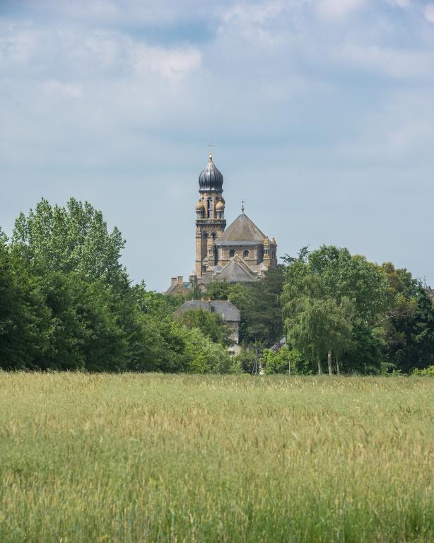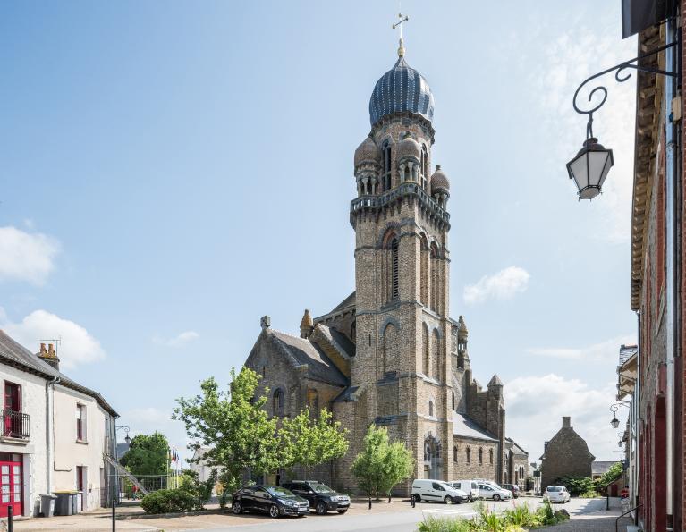 Eglise actuelle construite sur les plans de Arthur Regnault entre 1881 et 1890 (daté par source), à l'emplacement d'un ancien édifice des 16e et 17e siècles portant les dates de 1571 et 1649. Eglise représentative de la production d'Arthur Regnault.