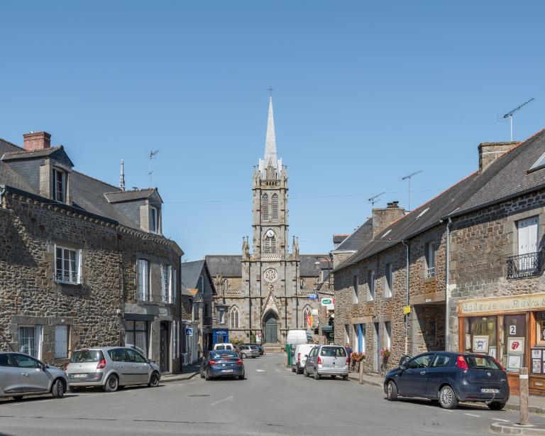 L'ancienne église se composait d'une nef terminée par un chevet droit et de deux chapelles. L'une d'elles avait été construite vers 1635, l'autre, plus ancienne, appartenait aux seigneurs de Beaufort. Cet édifice a été détruit en 1856. L'église actuelle est construite en 1861 sur les plans d'Hippolyte Béziers-Lafosse, architecte à Saint-Servan ; l'entrepreneur M. Lévêque de Rennes a réalisé ce chantier. Le premier projet, soumis au conseil local des bâtiments civils en 1854, était de style néo-renaissance, alors que les deuxième et troisième projets sont de style néo-gothique. Les travaux commencés en 1856 sont terminés en 1861 (sauf la décoration intérieure). Le tympan a été sculpté par Charles Goupil entre 1861 et 1868. Le coût total de la construction s'est élevé à 70 460 francs de l'époque. Dans les années 1870, différents travaux ont lieu : aménagement de la place de l'église, réparation des contreforts, reconstruction des murs de soutènement autour de l'édifice. En 1930, le clocher et la toiture de l'église sont également restaurés.
