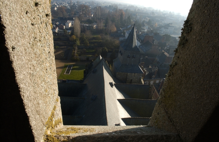 La seigneurie passe au 13e siècle, à la famille de Vitré qui transforme en 1206 en collégiale la chapelle Notre-Dame du château. La tour située en façade sud présente un fort talutage et des parements de grès groussard qui indiquent une origine romane. L´arc triomphal brisé remonte quant à lui peut-être au 13e siècle. Le chœur à pans coupés, d´inspiration normande, est construit au 14e siècle. La nef reconstruite au début du 16e siècle est flanquée également au sud de six chapelles à pignon. Le collatéral nord est reconstruit en réplique de celui du sud en 1859 sur les plans de l´architecte Nugue. En 1869 enfin, l´architecte Arthur Regnault remplace l´ancienne tour-porche à l´ouest par un imposant clocher dont la flèche, inspirée des modèles cornouaillais, affiche dans ce pays des Marches le particularisme breton, il ajoute également des lucarnes au-dessus des baies de l´abside. La collégiale fut desservie par des chanoines jusqu'à sa conversion en église paroissiale en 1791. Elle devint basilique mineure en 1951, l'ombrellino et la cloche situés dans le choeur témoignent de cette événement.