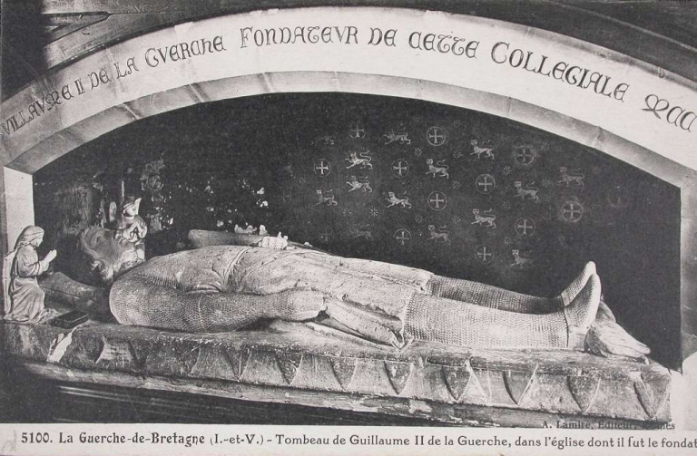 La Guerche-de-Bretagne (I-et-V). Tombeau de Guillaume II de La Guerche, l'église dont il fut le fondateur. Carte postale, Rennes : A. Lamiré, édit., [s.d.]. (A.D. Ille-et-Vilaine : 6 Fi).