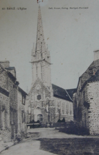 Eancé (I.-et-V.). L'église. Carte postale, Martigné-Ferchaud : Brunet, Horlog., 1904. (Coll. part.).