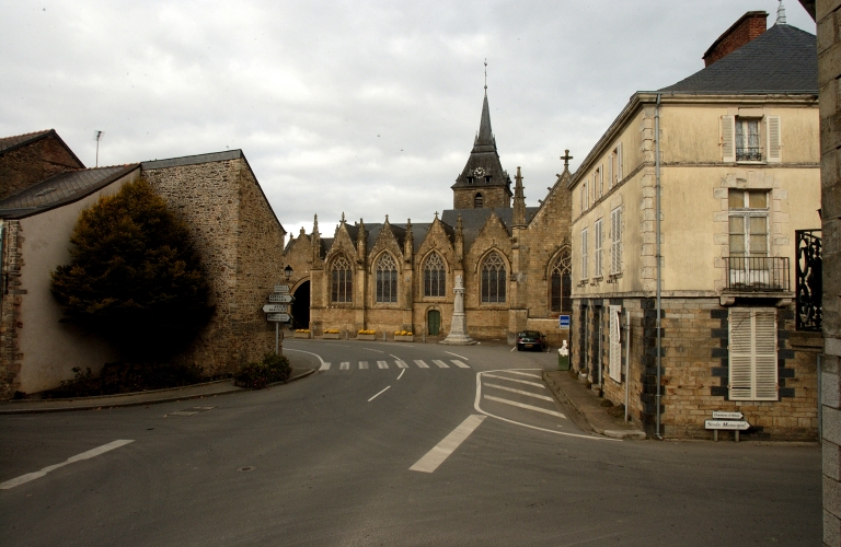 L´église paroissiale Saint-Marse a été construite en plusieurs campagnes. Le clocher remonte au 4e quart du 15e siècle. La nef quant à elle date du 16e siècle. Le portail occidental à deux baies jumelées porte les inscriptions : J.V.S. (JESUS VIVENTIUM SALVATOR) ET I.V. (INITIALES DE JEAN LEVEQUE, MORT EN 1545) ainsi que la date de 1566 sur le vantail sud. Ce portail de style renaissant est exceptionnel, il mêle une iconographie profane, frise du cortège de Bacchus et des sentences bibliques en latin et en français. Cette iconographie d´inspiration luthérienne a pu suggérer l´intervention de Renée de Rieux, femme de Guy XVIII de Laval, convertie au protestantisme. Le porche monumental qui le protège dit porche des malades est daté 1582. La porte du collatéral nord, dite porte sainte Marse, est également datée 1545 et 1548 sur le vantail. Le transept et le choeur sont quant à eux entièrement construits en gothique flamboyant à la fin du 19e siècle par l'architecte Crespel avec remploi d' éléments anciens : pinacles et porte du bras sud.