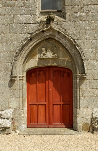 Plan allongé. Chapelle au sud du choeur et sacristie accolée au nord. Vaisseau unique terminé par un chevet plat. Clocher en façade, en bas de nef. A différents endroits de la construction se trouvent des pierres sculptées d'écus et d'inscriptions. C'est le cas sur le mur nord, où une pierre porte une inscription difficilement lisible et la date de 1624.