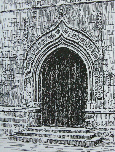 IFFENDIC. - L'Eglise : portail ouest, dessiné par E. Jégard. In : BANÉAT, Paul. Le Département d'Ille-et-Vilaine... Rennes : Librairie Moderne J. Larcher, 1927-1929, 4 vol.