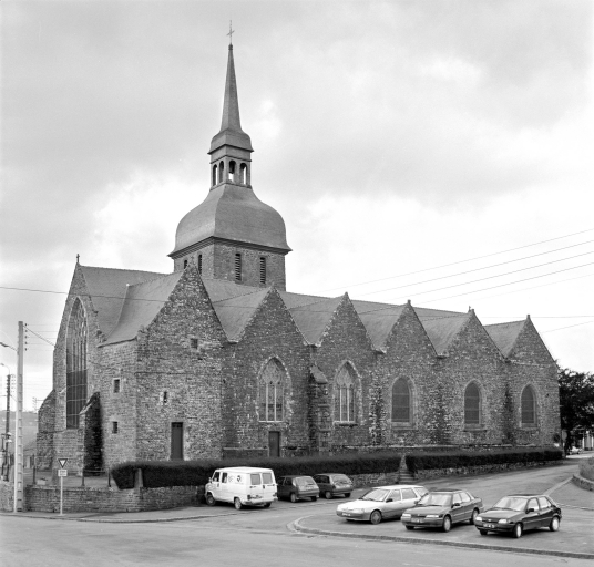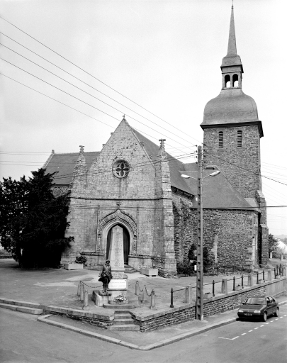 Eglise de plan allongé, à deux vaisseaux : nef et collatéral nord. Le chœur s´ouvre par un arc diaphragme, il est terminé par un chevet plat éclairé par une grande verrière. Une sacristie à étage est accolée contre le mur nord du chœur. La tour du clocher située en façade sud est cantonné à l´ouest d´un porche qui a servi également d´ossuaire et à l´est d´une chapelle, dite chapelle du Breil. L´élévation latérale nord se définit par une succession de pignons multiples qui caractérise aujourd´hui l´église ainsi que sa façade ouest aux contreforts à degrés.